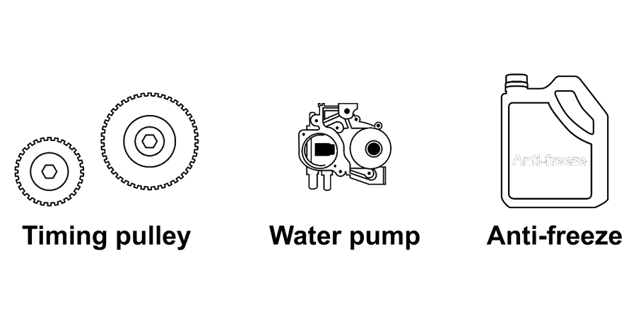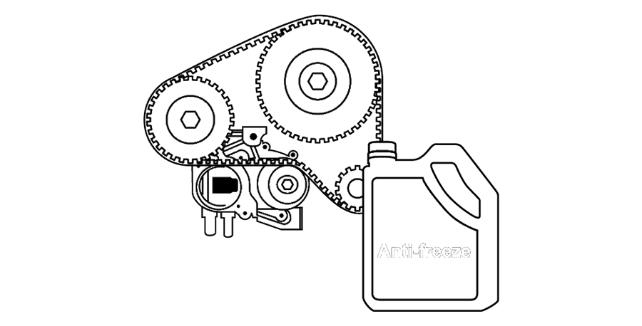 The timing belt, or timing chain in some vehicles, is a drive belt that synchronizes the rotation of the engine’s crankshaft and camshaft with the opening and closing of your engine’s valves. Depending on the vehicle, it may also rotate the water pump. When the crankshaft turns, the timing belt turns the camshaft, which opens and closes the engine valves to allow the pistons to move up and down. Your vehicle’s engine operates in four phases: intake, compression, combustion, and exhaust. During the intake phase, intake valves open and exhaust valves close as fuel and air enter the cylinders. As the air and fuel is mixed, compressed, and ignited by spark plugs during the compression and combustion phases, the valves close. The remaining air and fuel is pushed out of the exhaust valve during the exhaust phase. The timing belt is responsible for synchronizing this process and for opening and closing valves during normal engine operation.