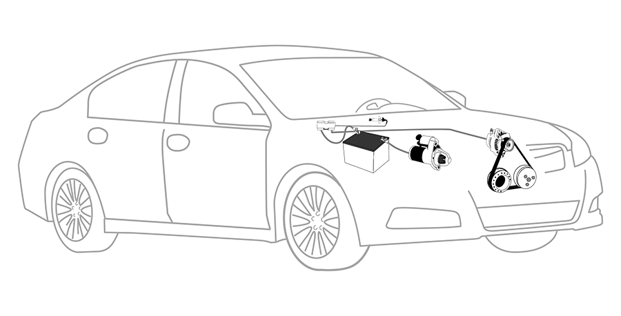 The starting and charging system is responsible for getting an engine to run and for keeping different components charged. The starting system involves a number of parts, including the ignition switch, starter, and flywheel. Using energy from the battery, the starter uses a gear to interact with the engine. Without a starter, an engine would be inoperable. The charging system, which includes the battery, alternator, and voltage regulator, play an equally important role. The battery is needed to send electricity to the starter. The alternator powers all the electrical components by generating electrical currents, and the voltage regulator ensures that the output of the alternator does not over- or under-charge the components dependent on the electrical current. Together, the starting and charging systems interact with one-another to keep a vehicle operating for its driver.